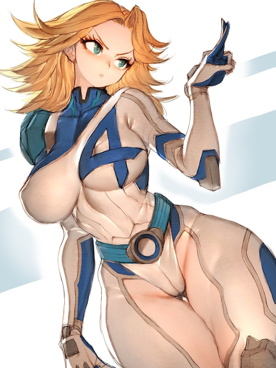 blue bodysuit