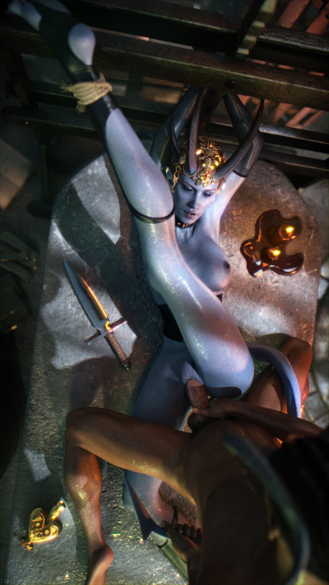 blue-skinned female